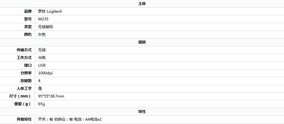 罗技(Logitech) M235 无线2代光电鼠标 灰色