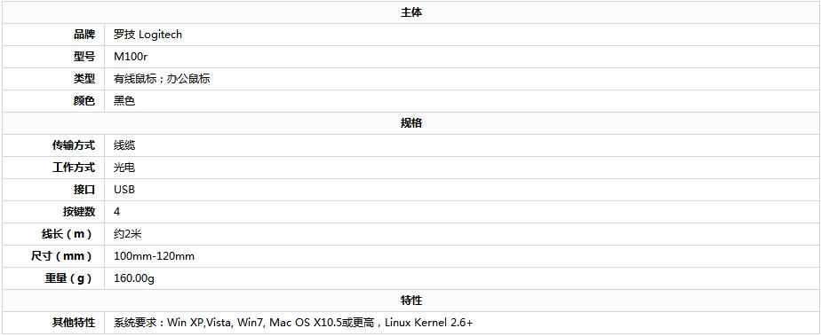 罗技(Logitech) M100r 光电鼠标 即插即用 (黑色) 即插即用、舒适可靠
