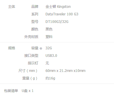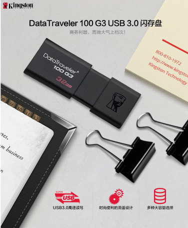 金士顿(Kingston)DT 100G3 32GB USB3.0 U盘 高速车载U盘 黑色