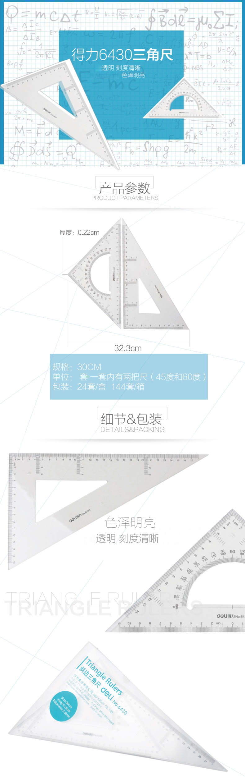 得力(deli)30cm办公通用直尺 测量绘图尺子 6230
