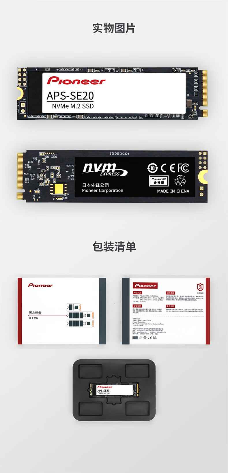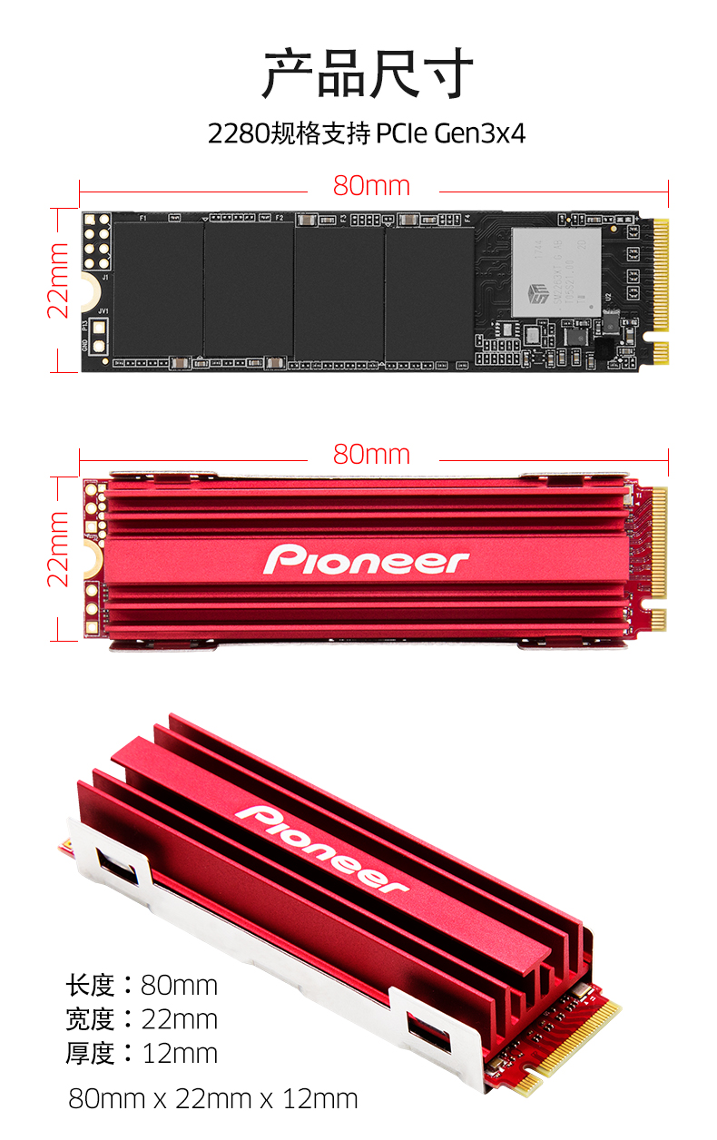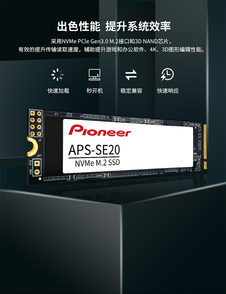 先锋(Pioneer)M.2 NVMe 2280 SSD固态硬盘 256GB(Pcie3x4 2280 SE20)