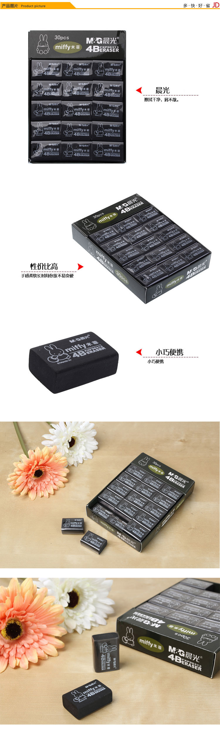 晨光(M&G)FXP96313卡通4B橡皮30块/盒 黑色