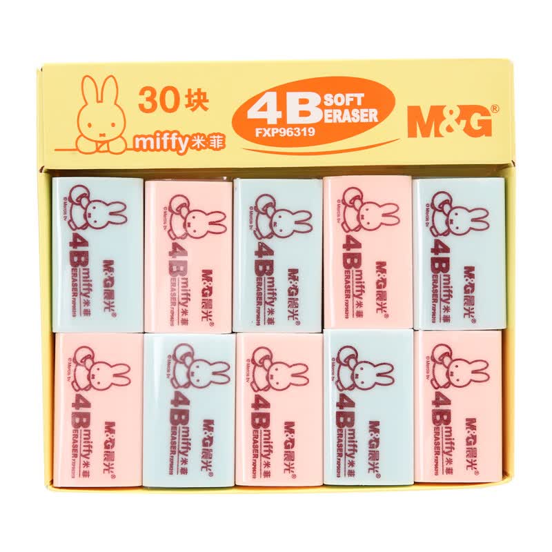 晨光(M&G) 橡皮擦2B/4B美术绘图橡皮 学生写字绘画橡皮 MF6306 黄/米菲/大号 30块盒